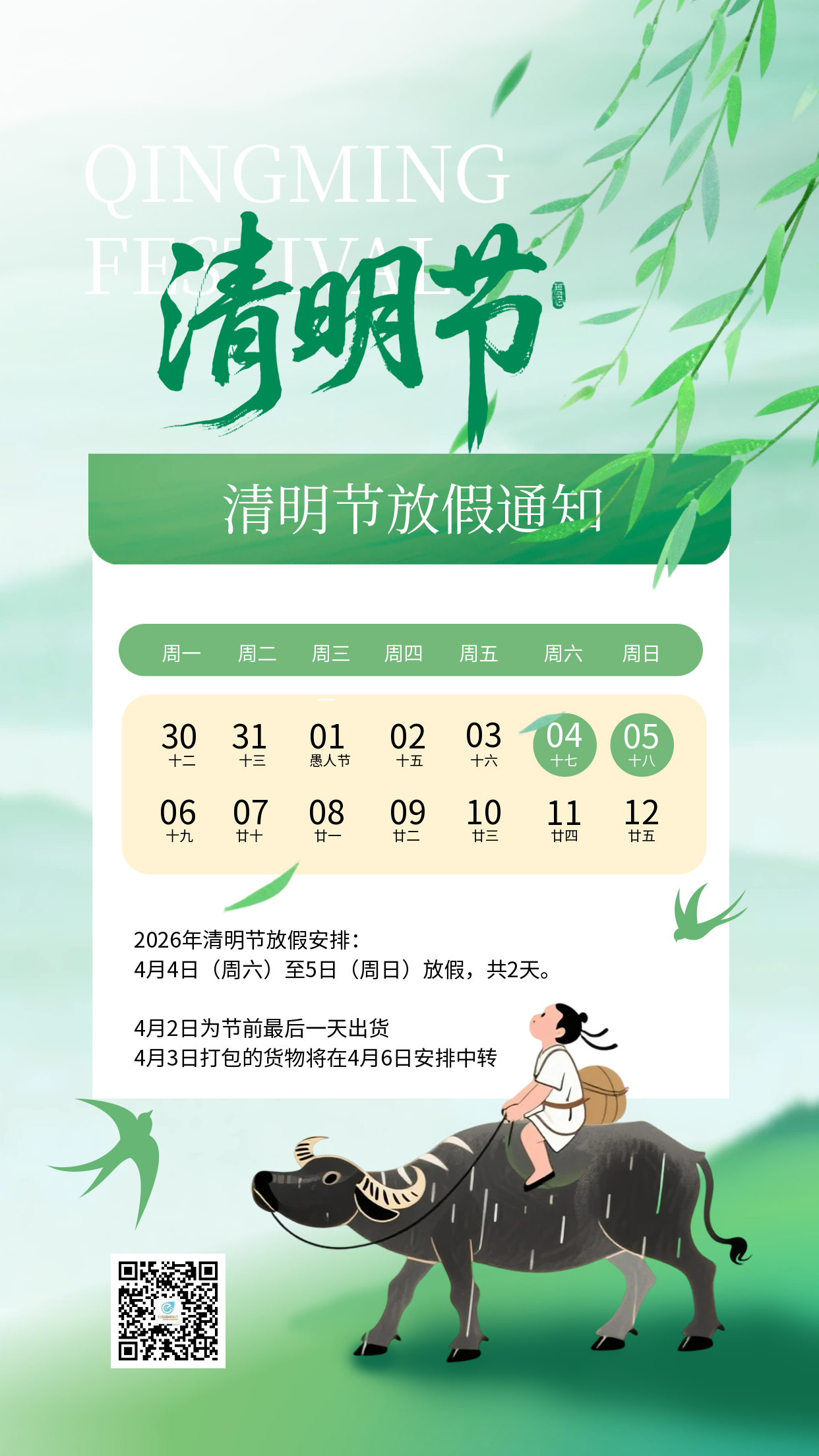| 2026年清明节放假通知